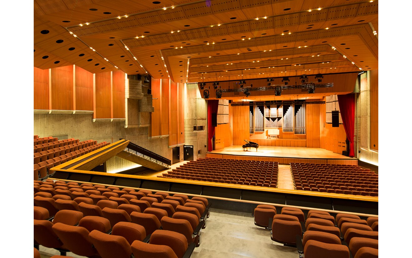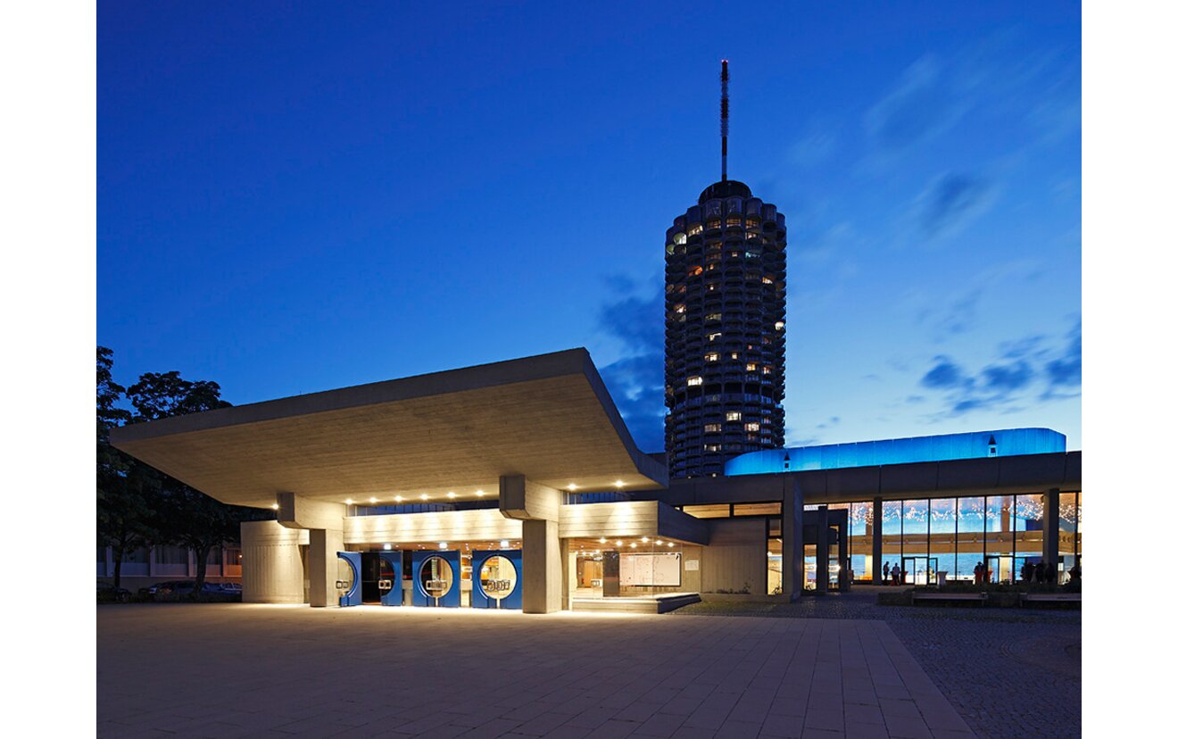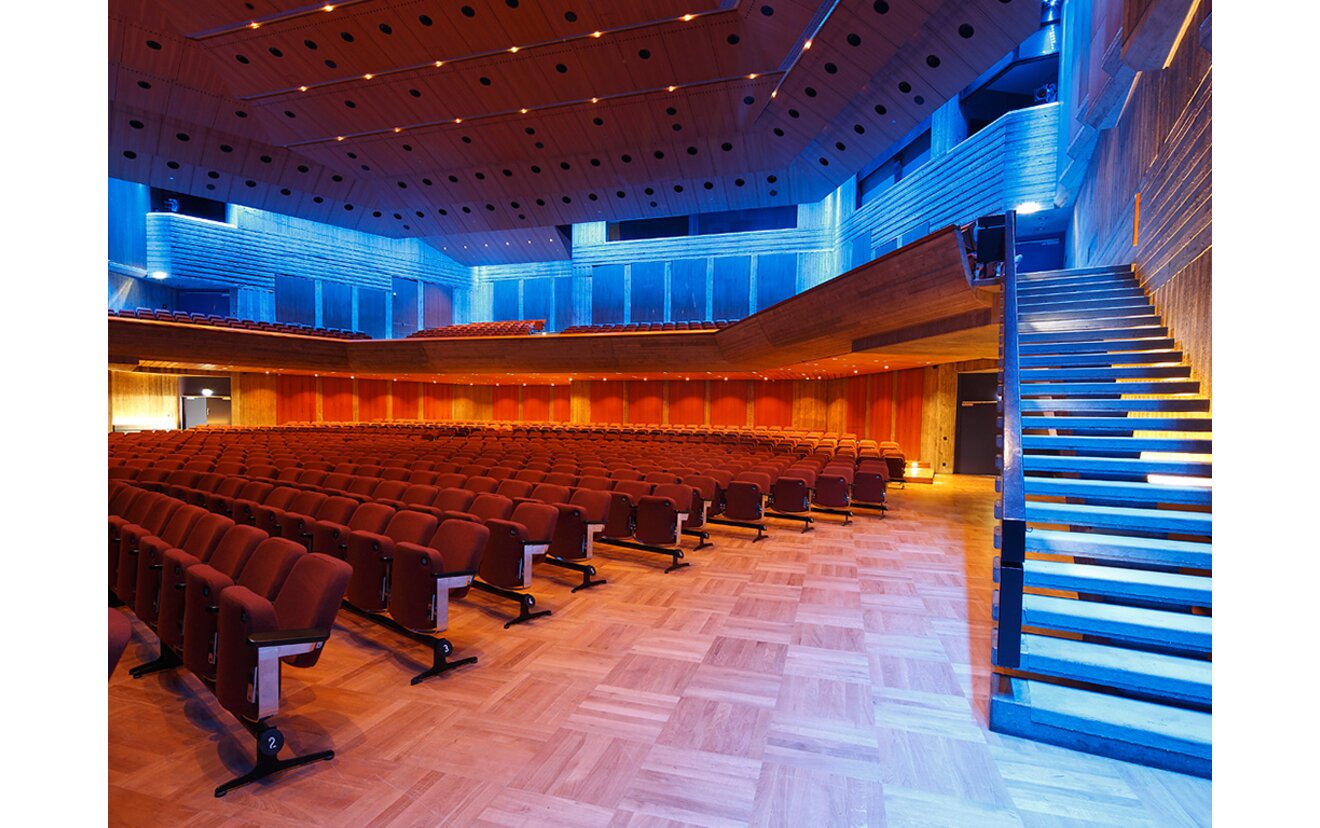 Das beeindruckende Innenraumkonzept ist die Vorlage für die „Nachtlichtarchitektur“, welche die Genialität der Raumdurchdringung transparent und sichtbar macht. Die Materialgleichheit der Innen- und Außenflächen (Fassade) sowie Gebäudefunktionseinheiten unterscheiden sich dann durch unterschiedliche Farbszenarien. Hierdurch wird der markante Baukörper des großen Saals für den Betrachter schon aus der Distanz optisch begreifbar.