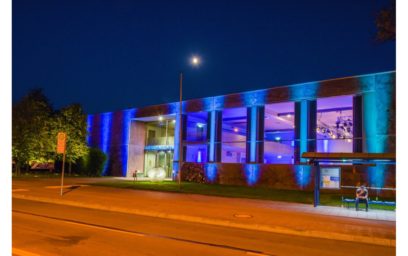 Die Bodeneinbauleuchten "tellus m hpq RGBW-quad" ließen sich unauffällig in die Umgebung der Fassade installieren und zeigen nun nachts ihr umfangreiches Farbspektrum. Durch den 4 in 1 RGBWquad-Chip in der Leuchte gelingt es, ein sauber fertig gemischtes Licht an die Fassade zu zaubern. Durch die unkomplizierte Steuerung "cambium xl" gelingt es nun den Betreibern jede Veranstaltung nicht nur zu einem kulturellen, sondern auch zu einem farblichen Highlight zu machen.