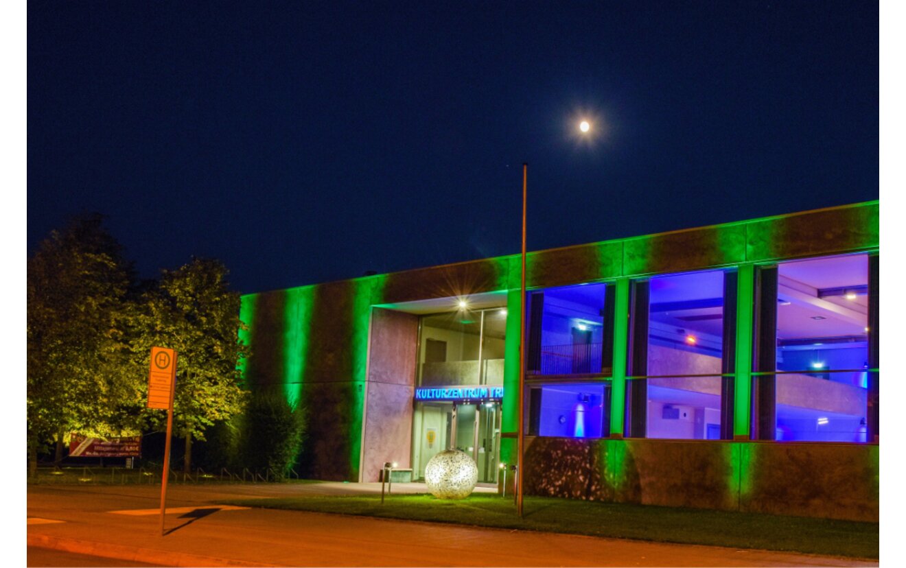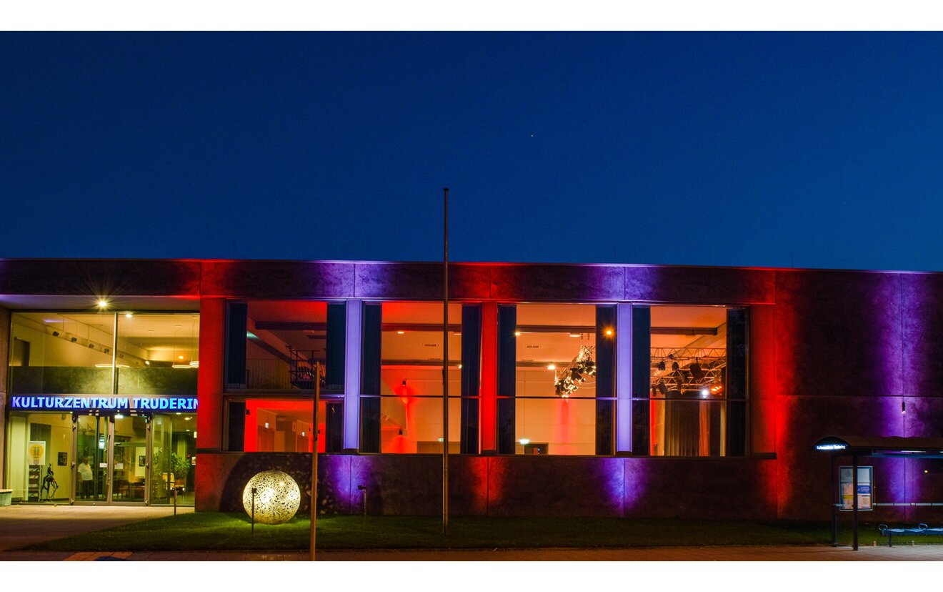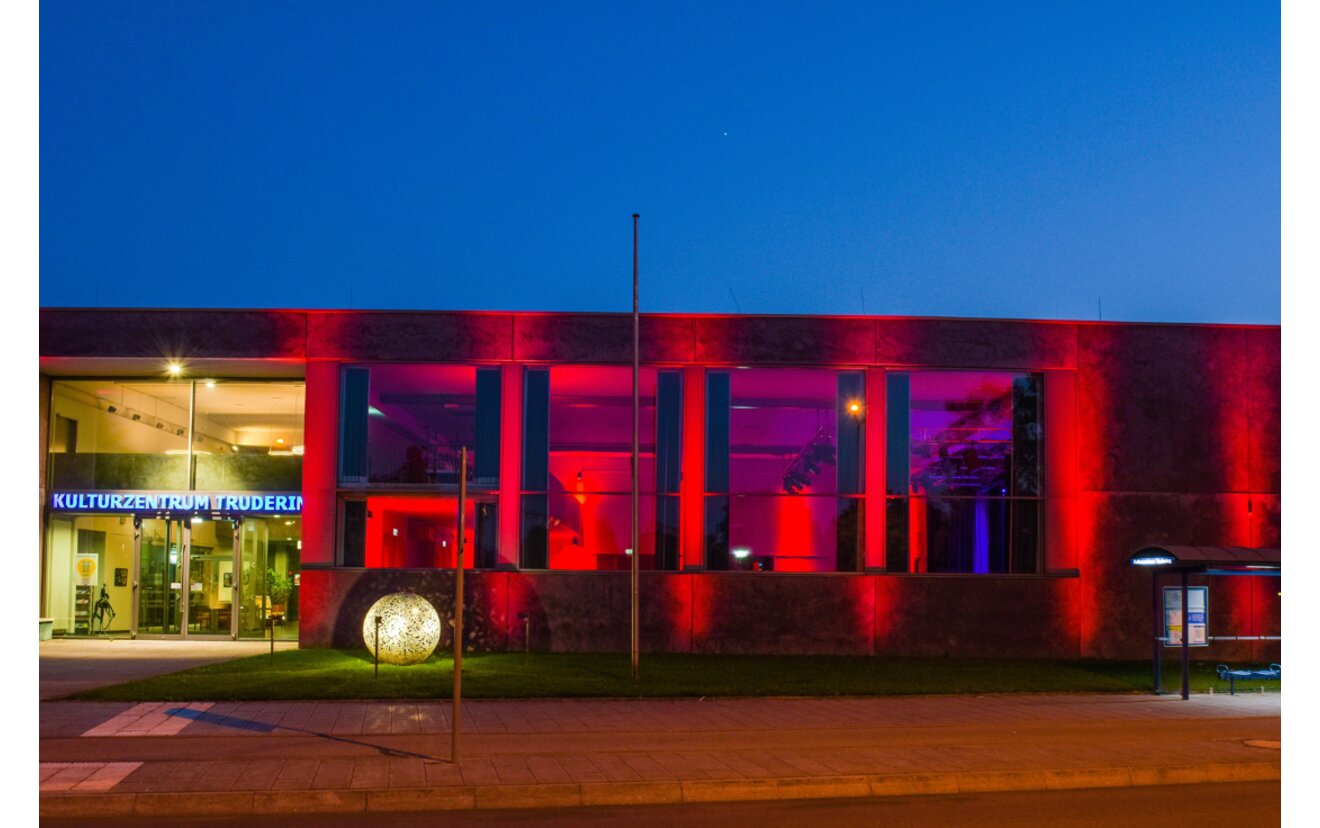 Der bordeauxrote Quader in Mitten von Trudering bei München erstrahlt seit 2018 in neuem Licht, damit ging ein langgehegter Wunsch der Truderinger in Erfüllung. In der Fassadenanstrahlung steckte viel Arbeit, Zeit und Engagement der Mitglieder des Fördervereins und das Ergebnis ist ein absoluter Eyecatcher.
