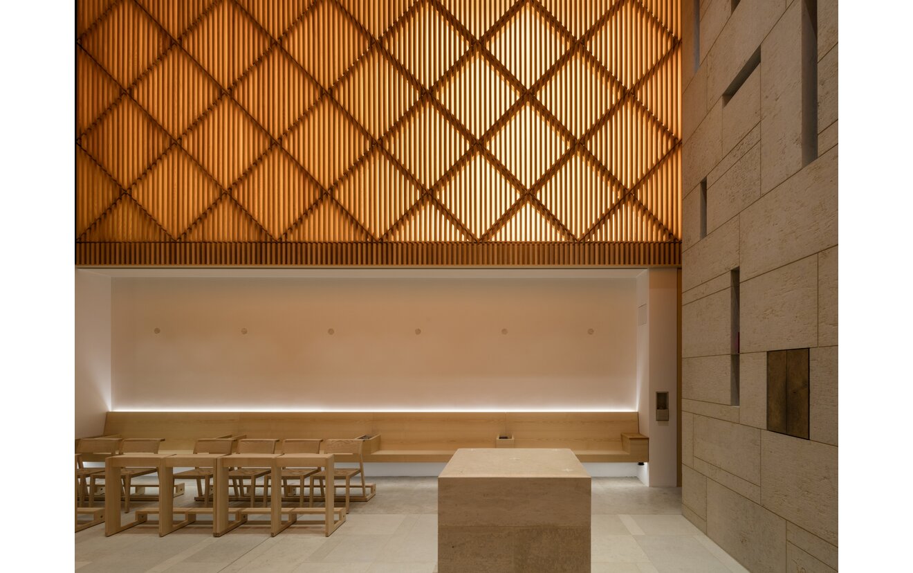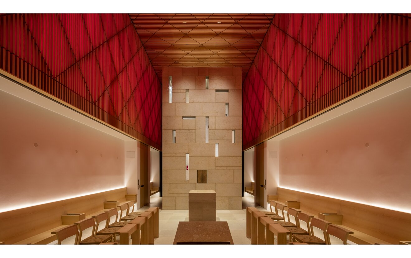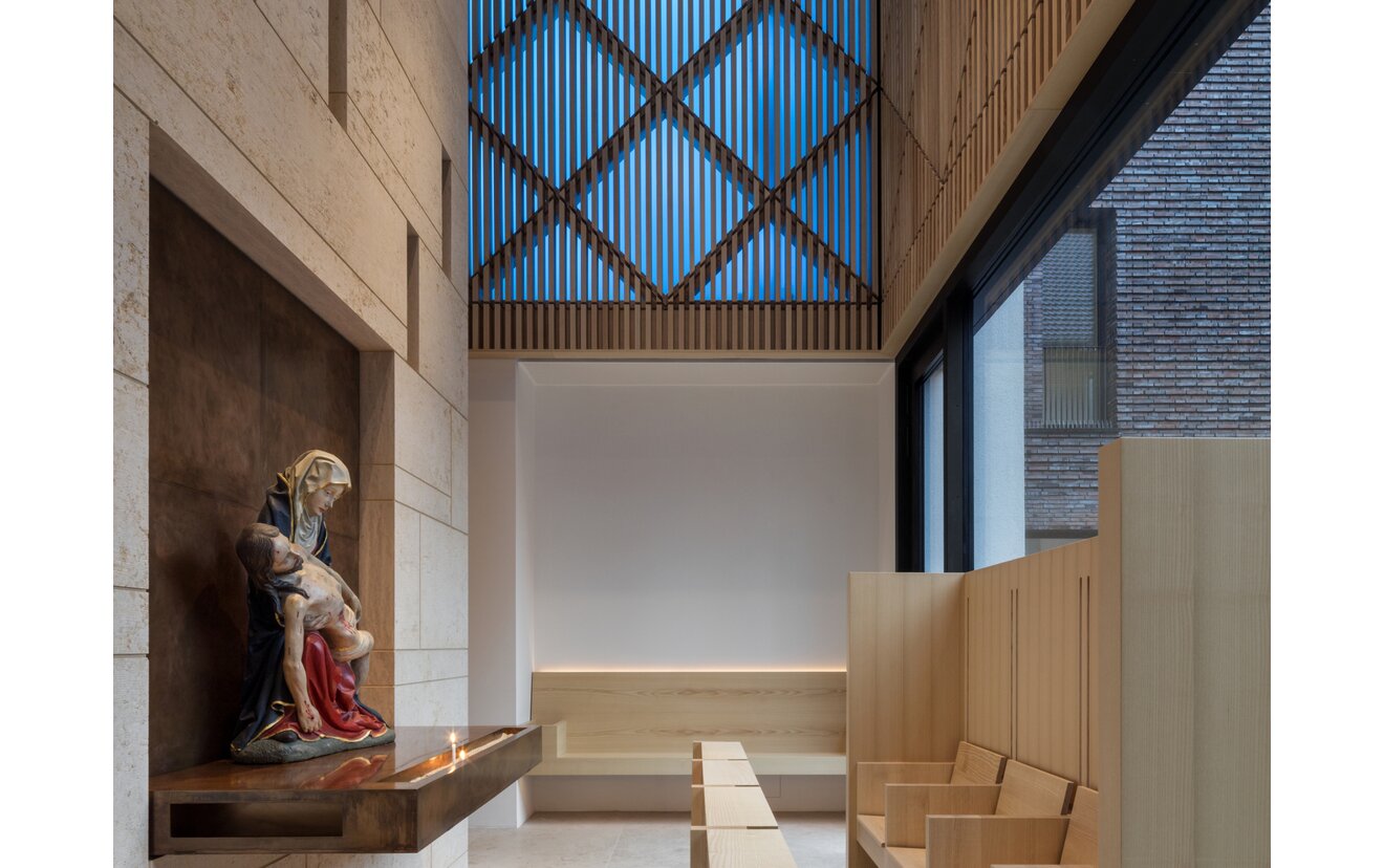 Die Symbiose der Grundmaterialien Glas, Holz und Stein macht die neue Seminarkirche des Erzbischöflichen Priesterseminars zu Paderborn zu einem einzigartigen Gebetserlebnis.