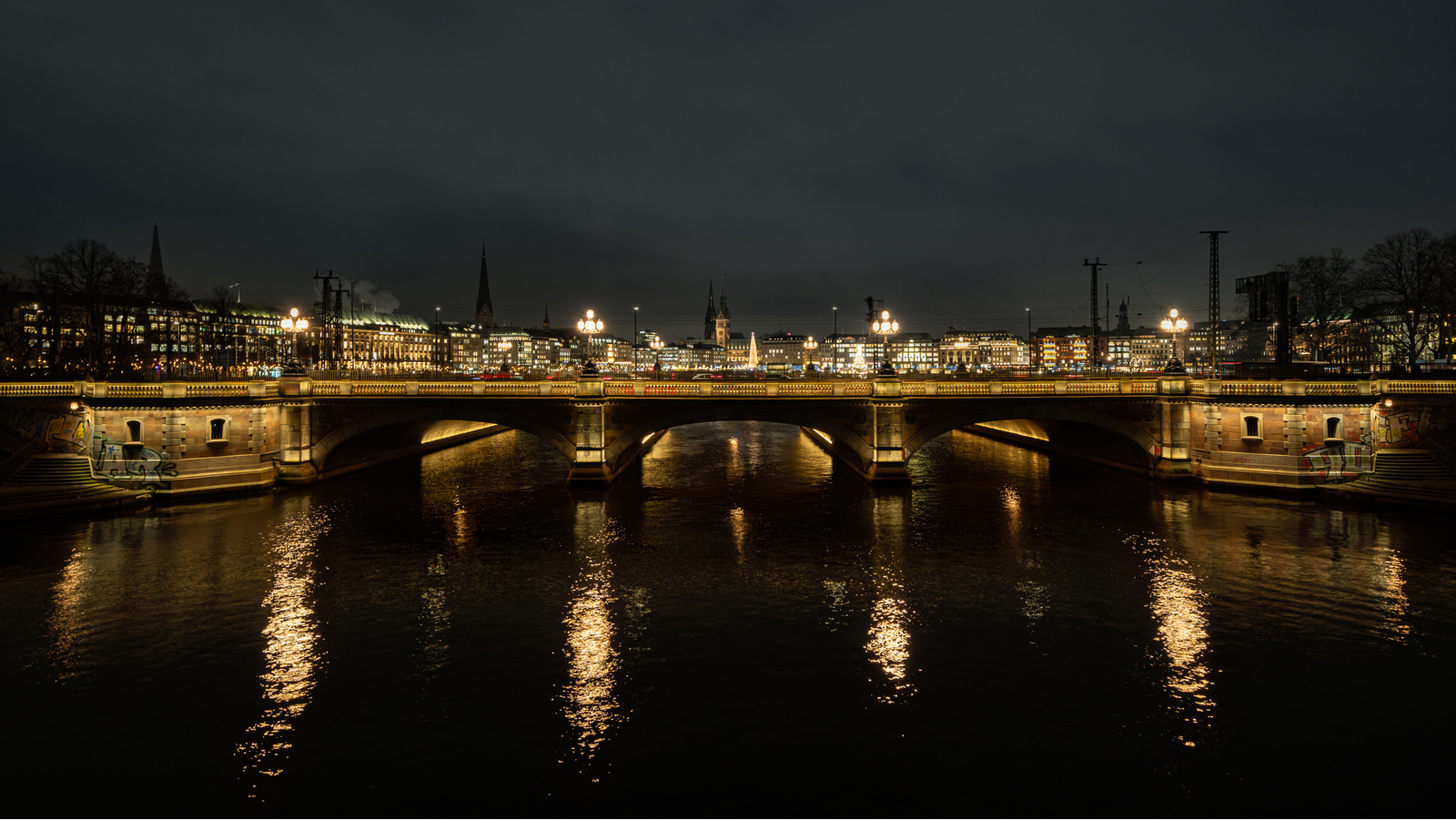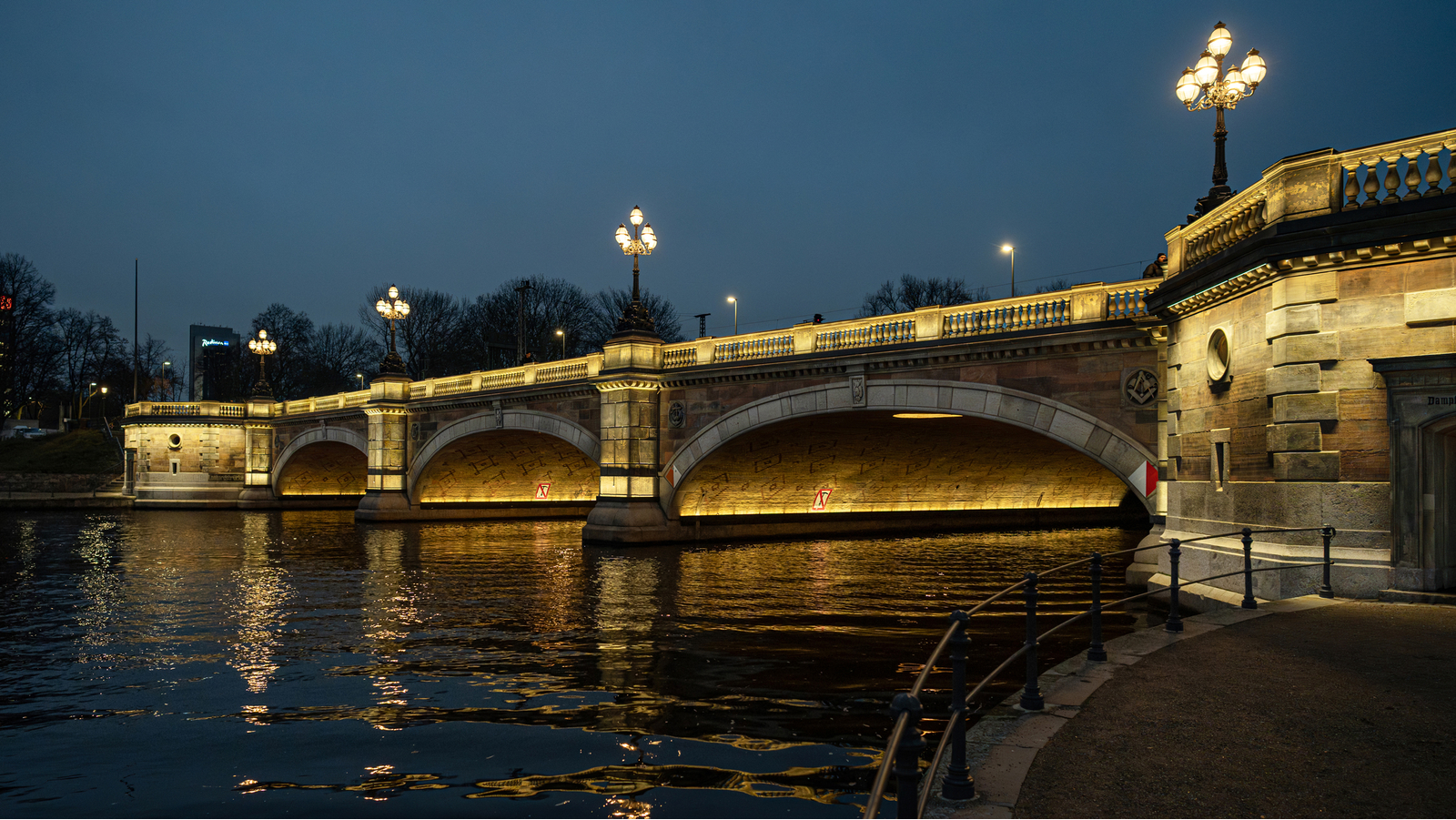 As a Hamburg lighting design office, we are particularly proud to see our lighting concept for the historic Lombard Bridge in action. With sensitivity, historical accuracy and state-of-the-art technology, we have emphasized the architectural unity of the bridge and at the same time specifically highlighted individual elements. Building in an existing listed building required close cooperation, detailed work, individual creative solutions, high technical quality and craftsmanship from everyone involved - as well as high-quality products from the manufacturers and visionary authorities. In the field of tension of this collaboration, we were able to present the Lombardsbrücke in a modern light that combines tradition, history and innovation.